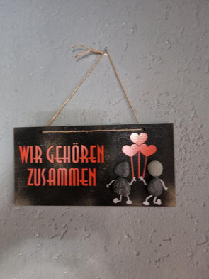 Holzschilder mit Kieselsteinen